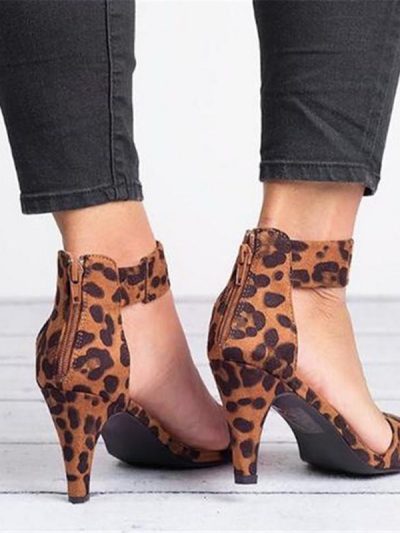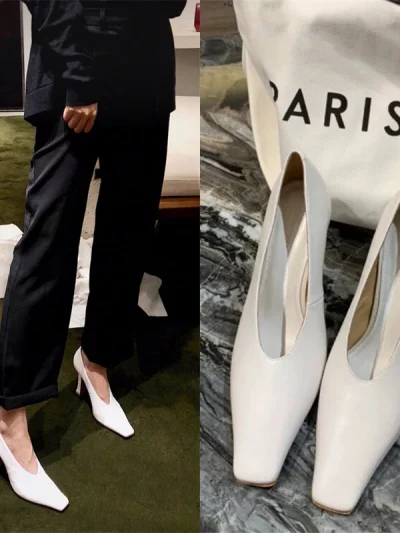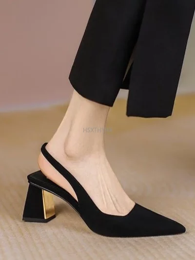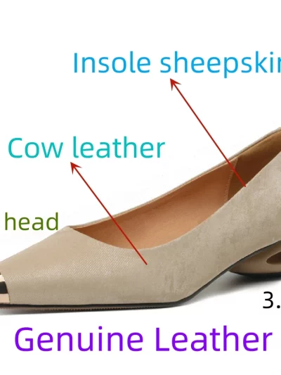 Comfortable Genuine Leather Women Heels Shoes Metal Toe Design Fashion Pure Colour Girls High Heel Shoes Easy