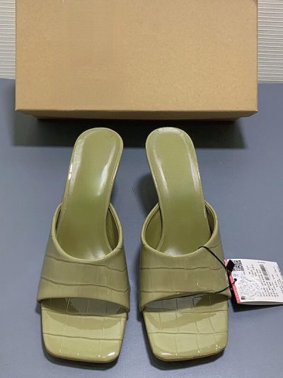Summer New Women Shoes Square Toe Open Toe Mid-heel Patent Leather Sandals Shaped Thick Heel High-heeled Slippers Designer Shoes