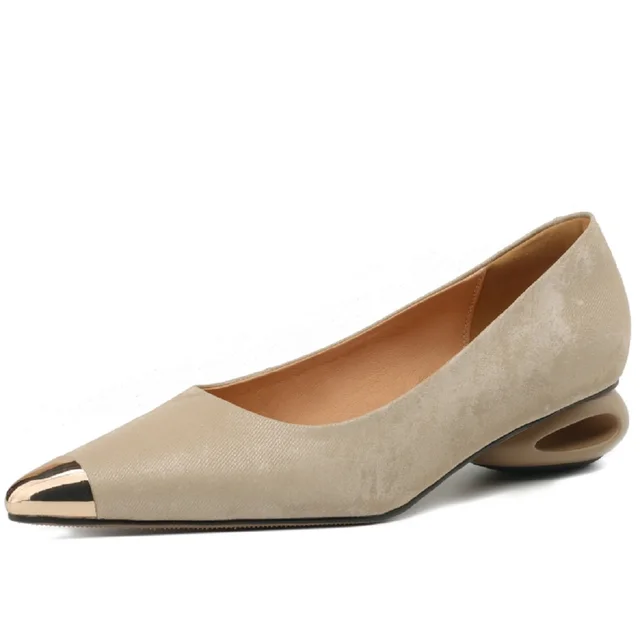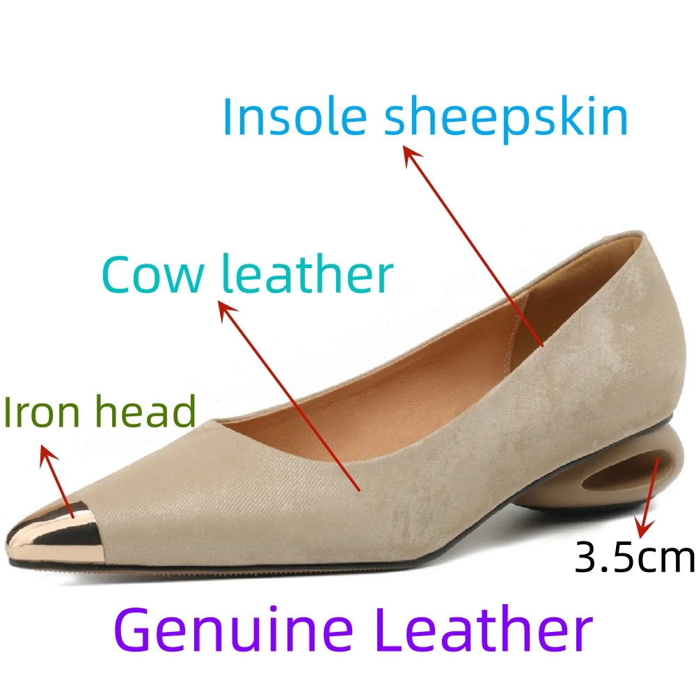 Comfortable Genuine Leather Women Heels Shoes Metal Toe Design Fashion Pure Colour Girls High Heel Shoes Easy