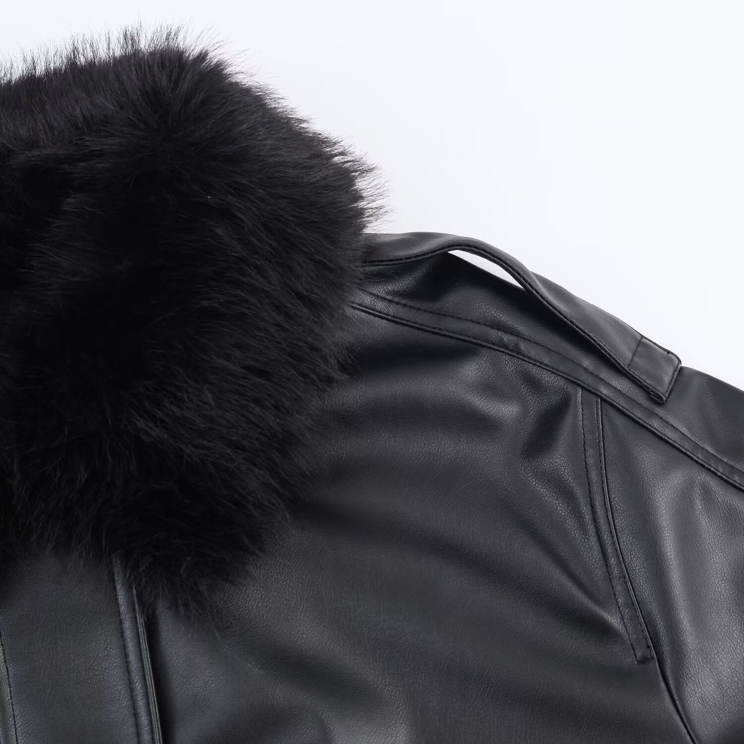 Detachable Faux Leather Collar Coat for Women
