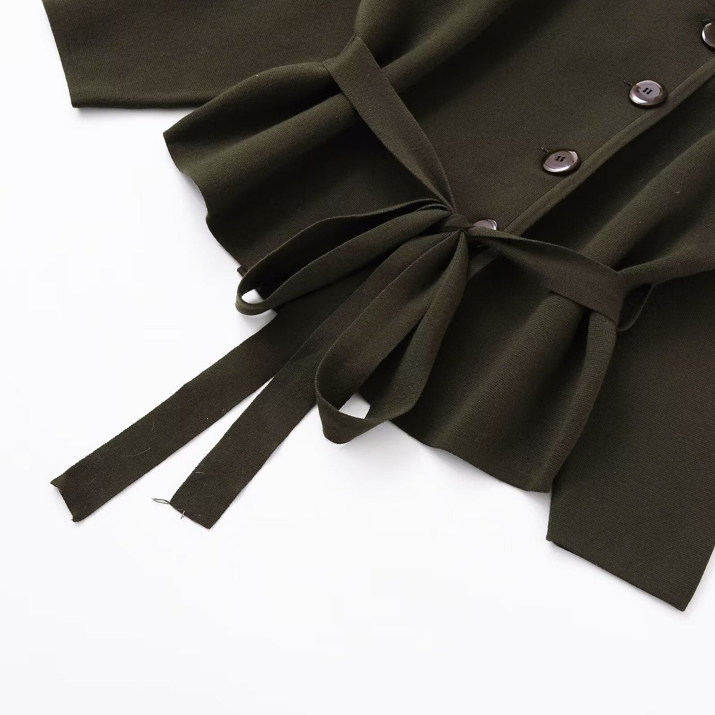 Knitted Long Sleeve Short Coat with Belt for Women
