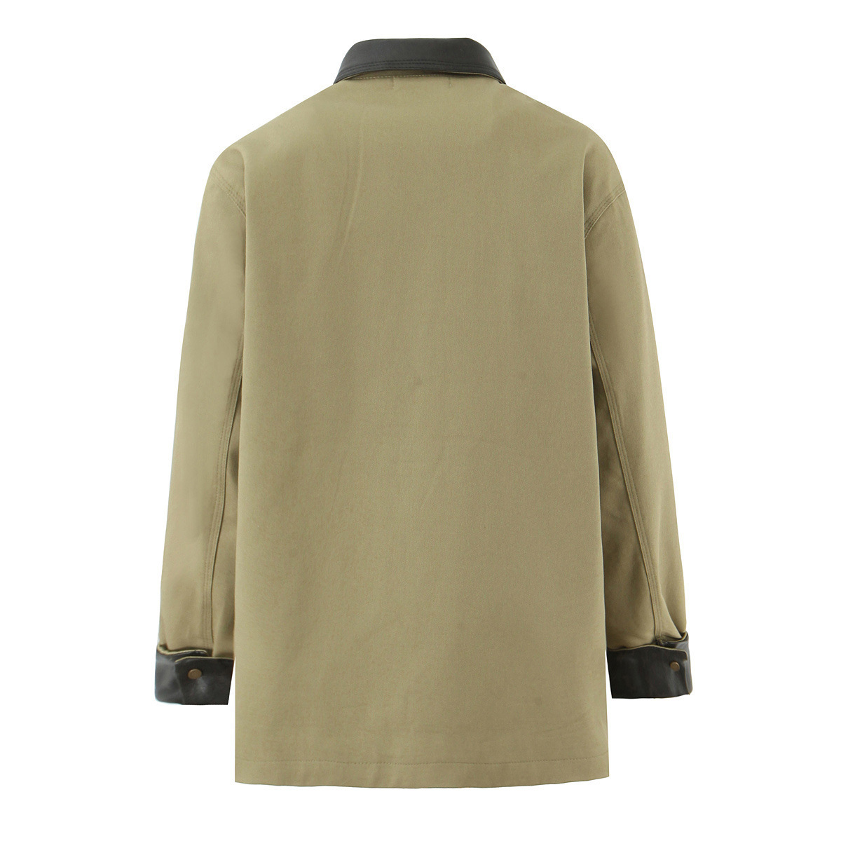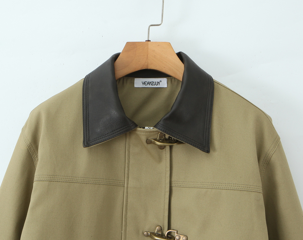 Patchwork Leather Collar Quilted Coat for Women