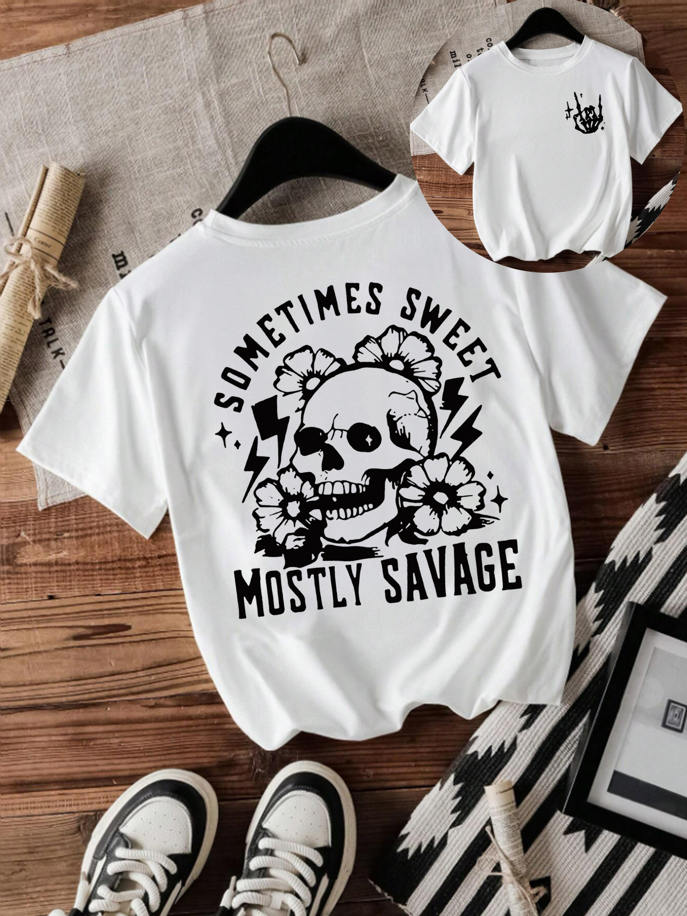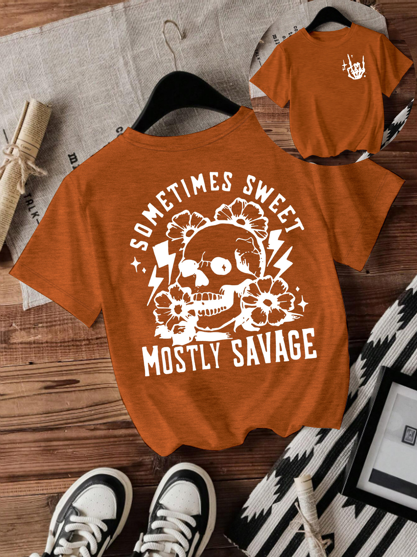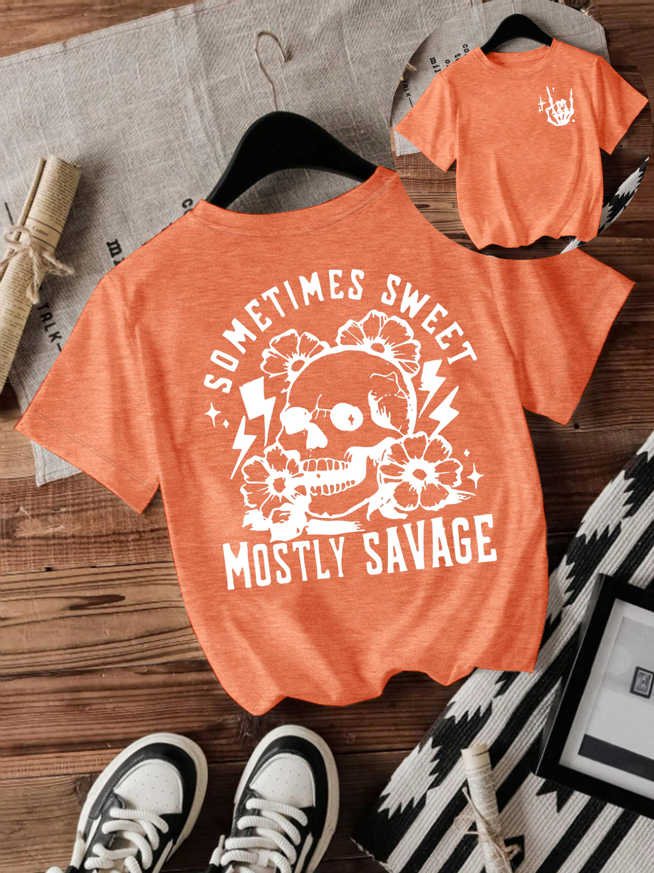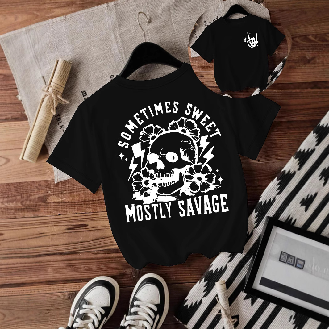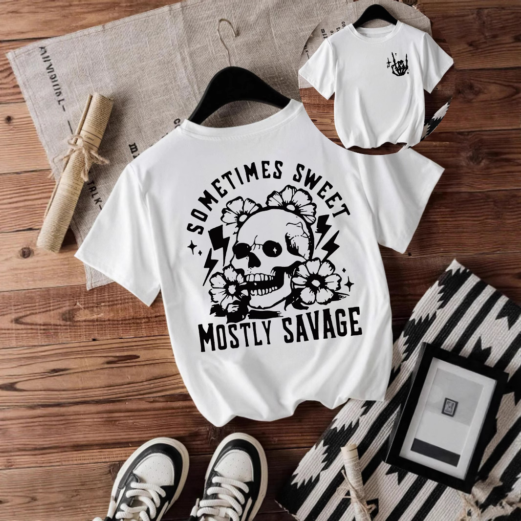 T-shirt women Halloween skull round neck