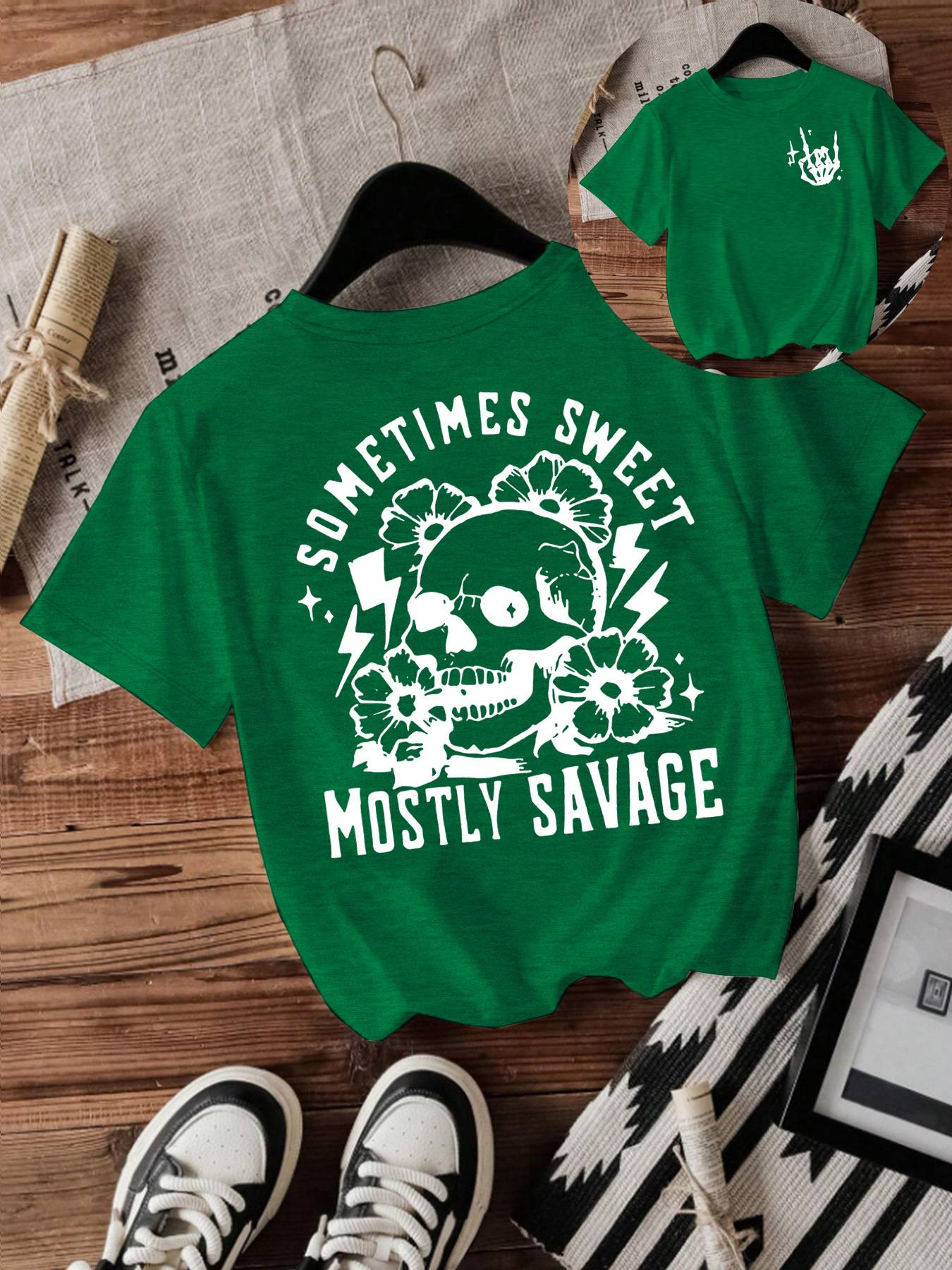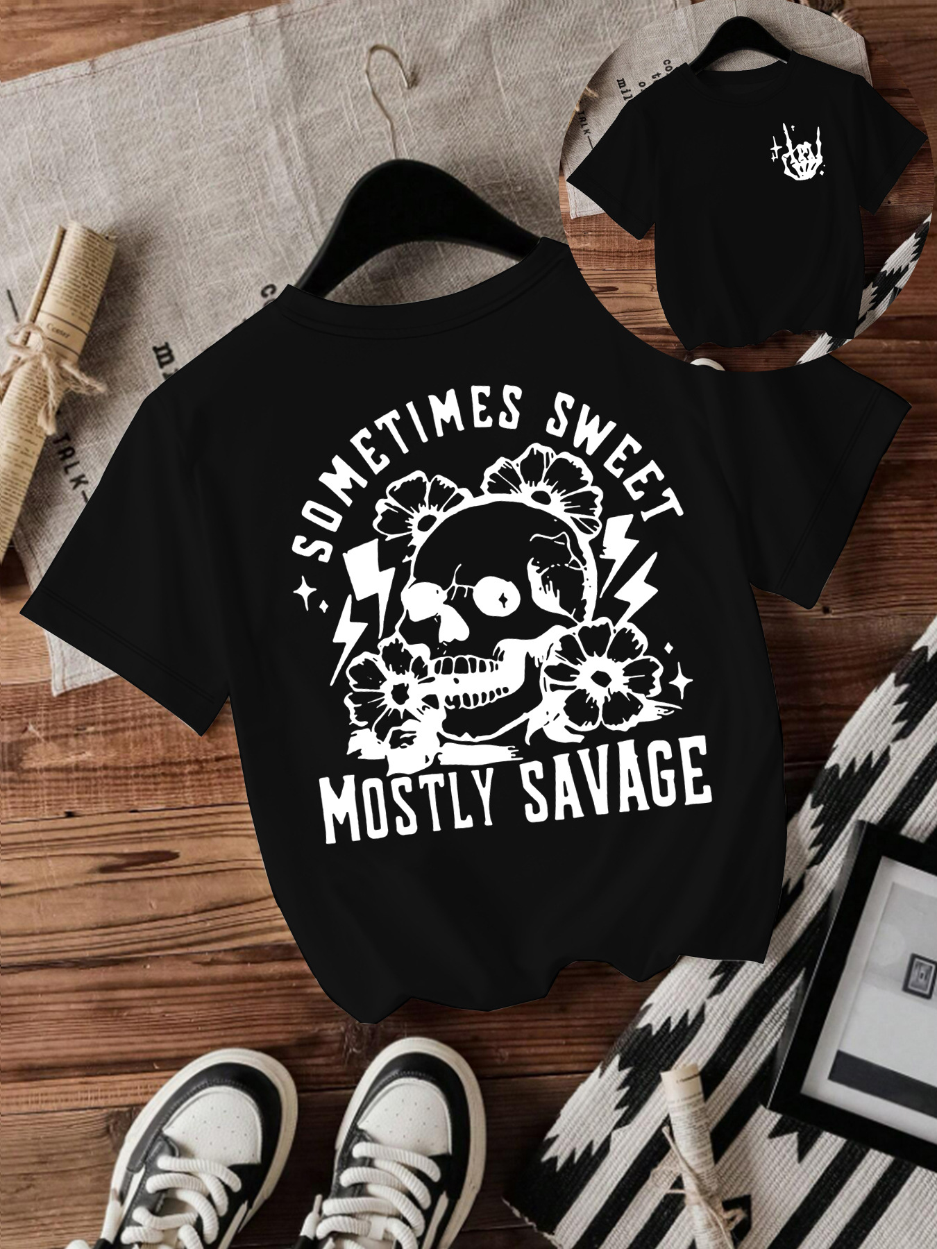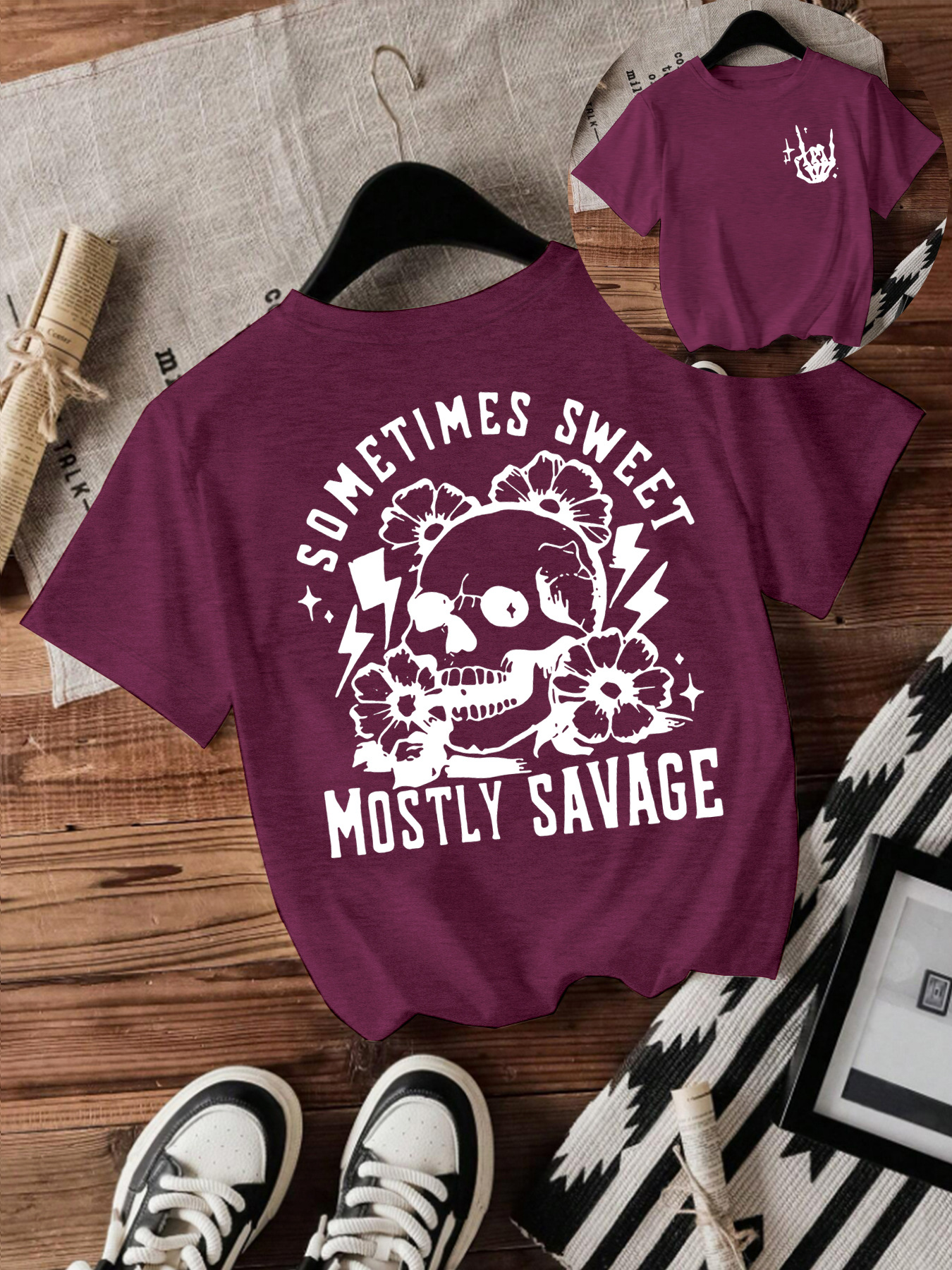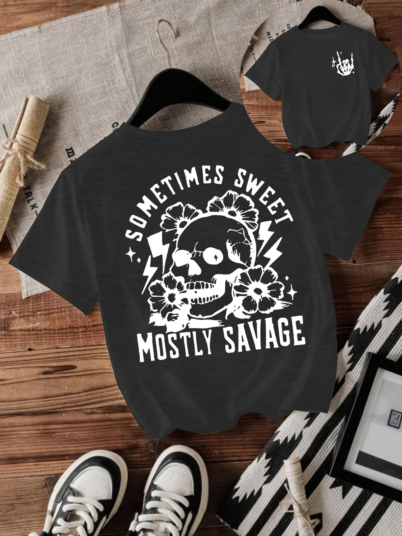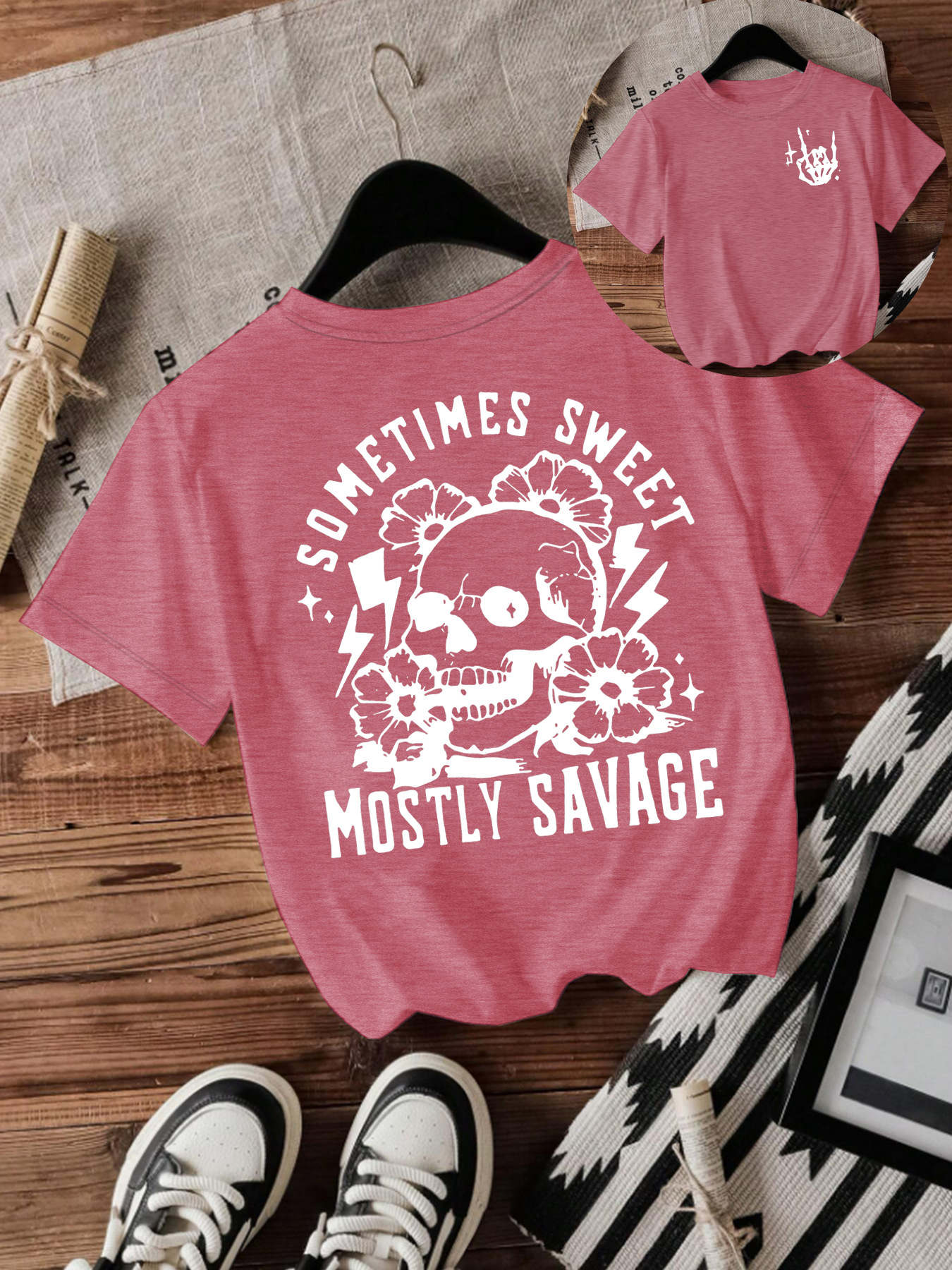 T-shirt women Halloween skull round neck
