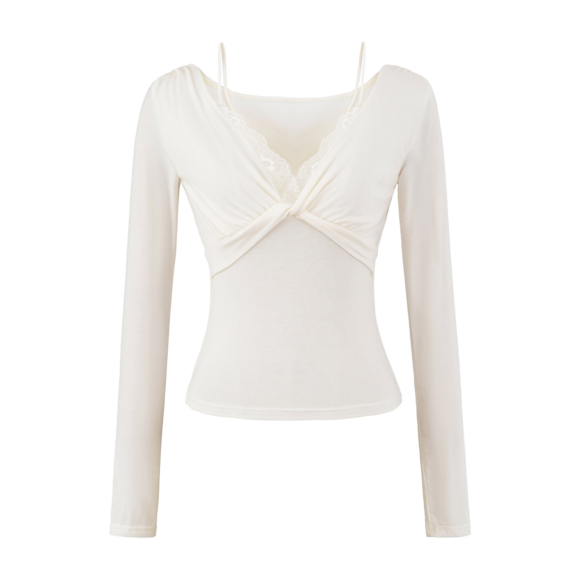 Twisted lace long sleeved T-shirt for women