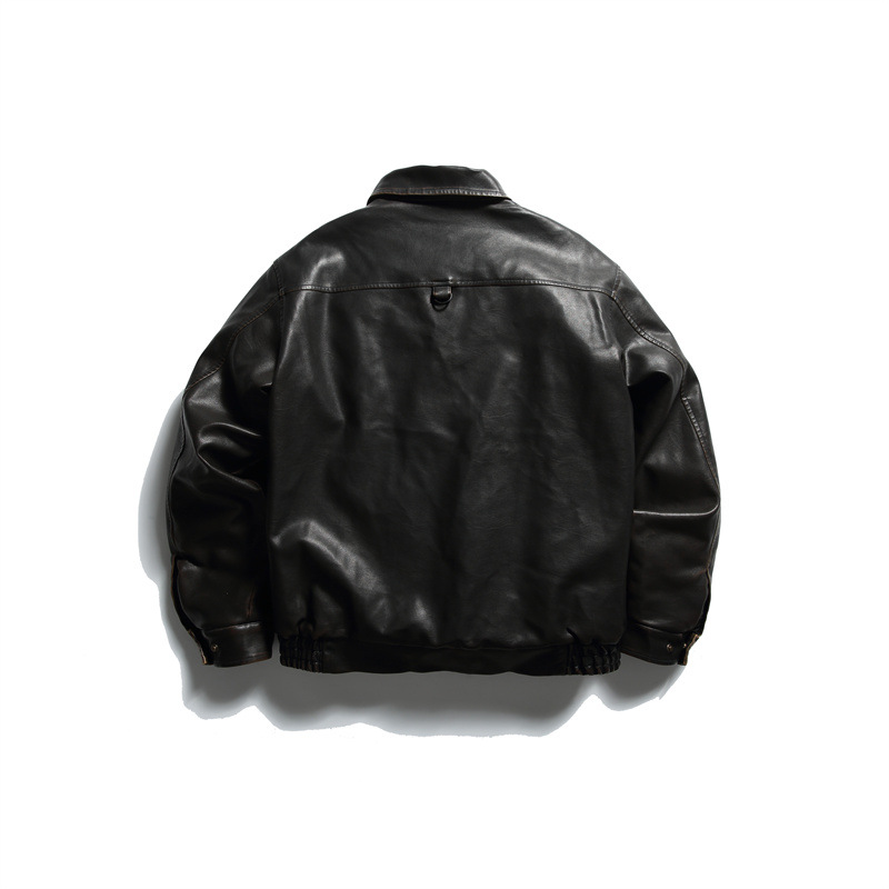 Washed PU Leather Cotton Coat for Men, Casual Warm Winter Jacket